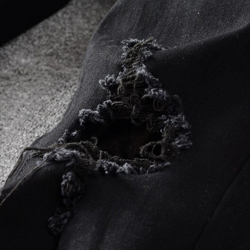 White Line Decorated Plain Ripped Jeans