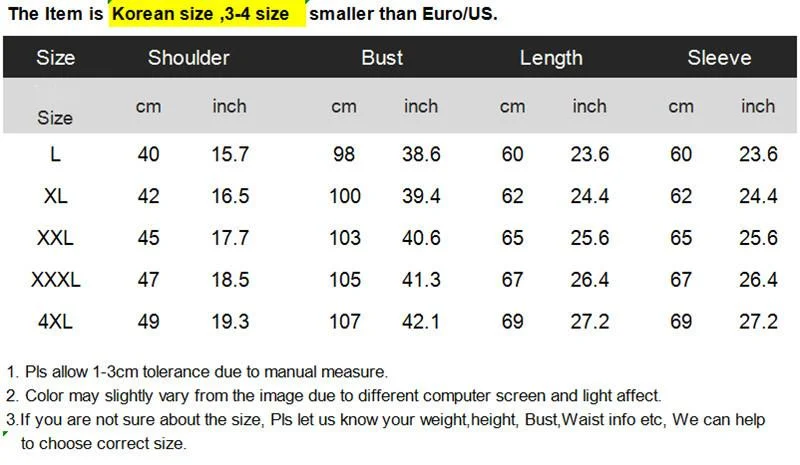 Ex: If you wear S on US Size, it is better if You Choose L on the Asian Size.