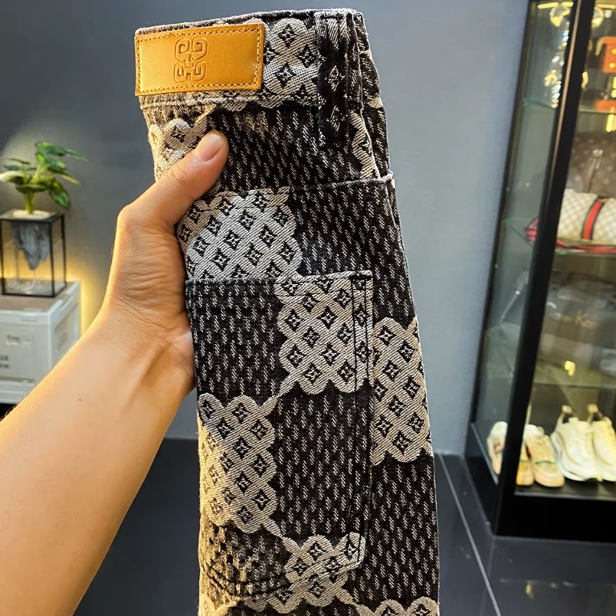 Elevate your wardrobe with our Geometric Pattern Straight Fit Jeans. Our slim fit design flatters your figure while providing all-day comfort with the zipper fly closure and denim-cotton material. Add a touch of flair to your outfit with the unique geometric pattern. Make a statement with every step!