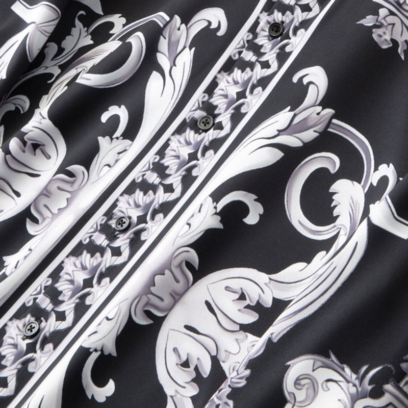 This timeless classic men's long-sleeve shirt is crafted with polyester for a comfortable, breathable fit. An eye-catching black geometric printed pattern adds subtle sophistication for an elevated look. Great for any occasion.
