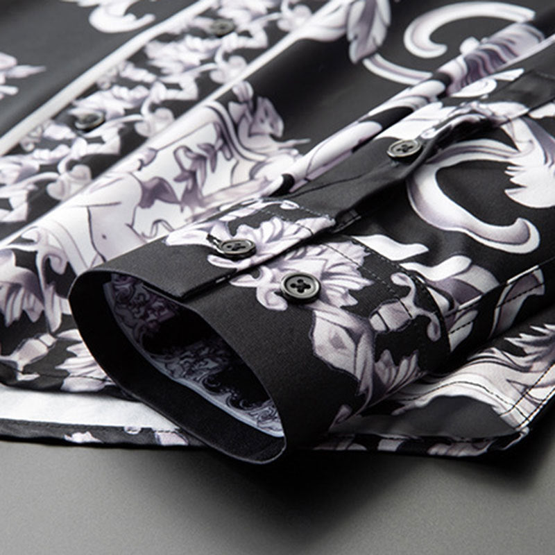 Black Geometric Printed Pattern Long Sleeve Shirt
