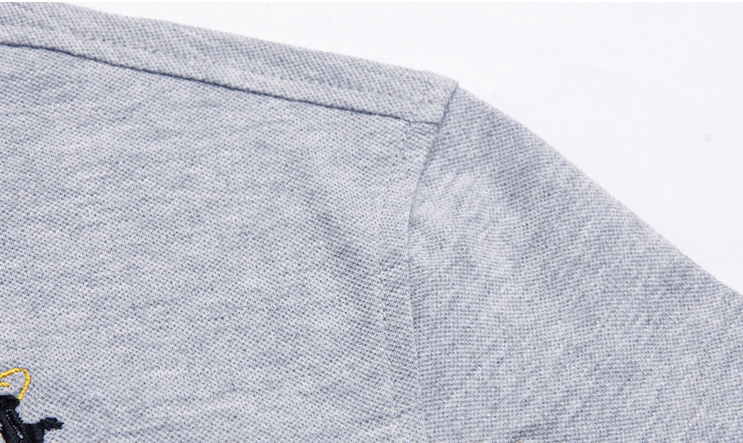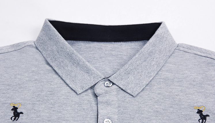 Solid Short-Sleeved Cotton Polo Shirt with Cowboy Embroidery Pattern Decoration