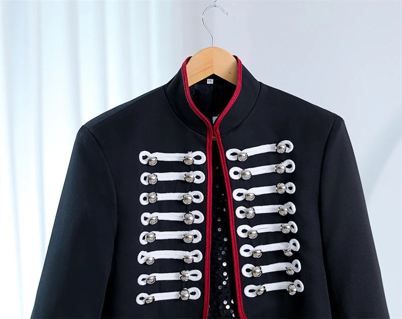 Experience Victorian-inspired style with our Steampunk Contrast Stand Collar Jacket. This unique piece features a stand collar and contrasting accents for a bold and sophisticated look. Perfect for adding a touch of steampunk flair to any outfit.