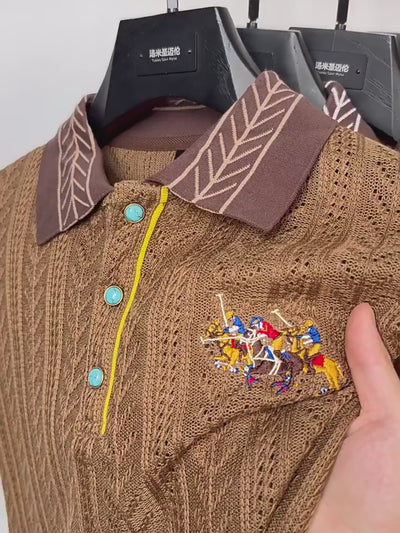 Elevate your casual wardrobe with this sophisticated Embroidery Jacquard Knitted Polo Shirt. Crafted from a premium blend of polyester and spandex, this piece delivers exceptional comfort with a touch of elegance. The intricate jacquard knit pattern adds visual interest, while the embroidered details showcase refined craftsmanship.