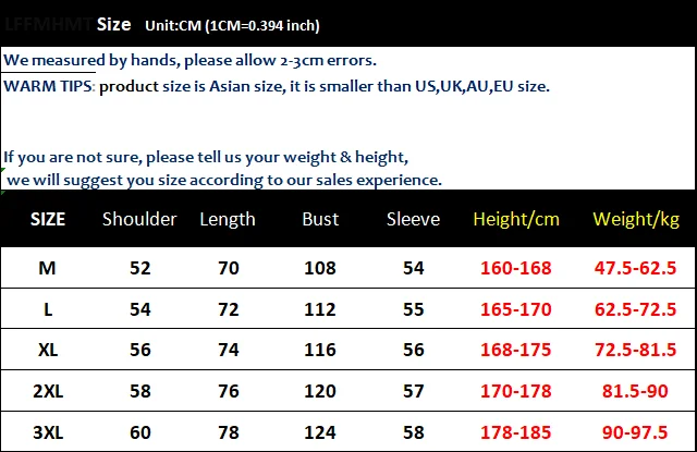 Ex: If you wear S on US Size, it is better if You Choose L on the Asian Size.