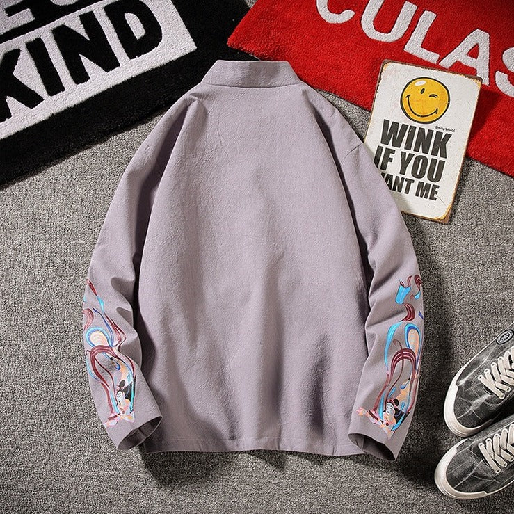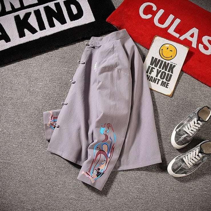 For a bold and stylish look, opt for a men's jacket that features a modern Chinese design. The bold and eye-catching pattern is ideal for mixing and matching with a variety of styles. The cotton material keeps him cool and comfortable all day long. The slim cut and single-breasted design are the perfect way to show off your best features.