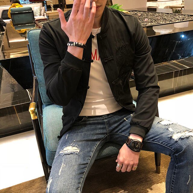 Chinese Style Dragon Embroidery Bomber Jacket