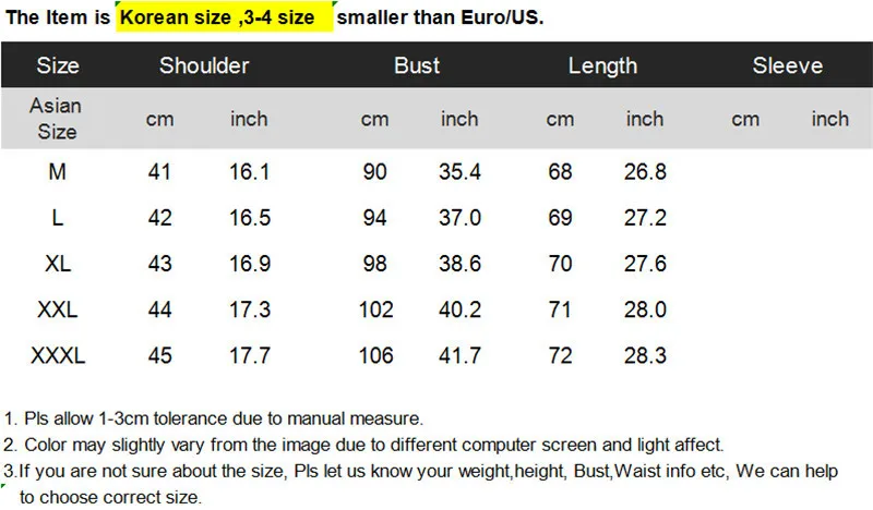Ex: If you wear S on US Size, it is better if You Choose L on the Asian Size.