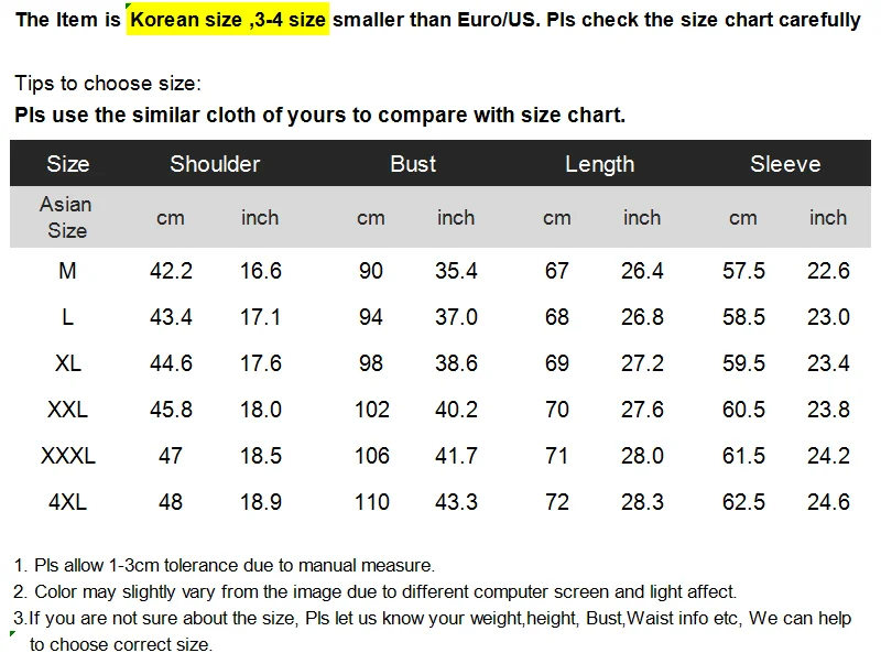 Ex: If you wear S on US Size, it is better if You Choose L on the Asian Size.