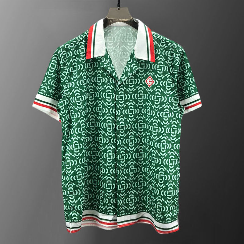Hawaiian Green Geometric Print Loose Shirt