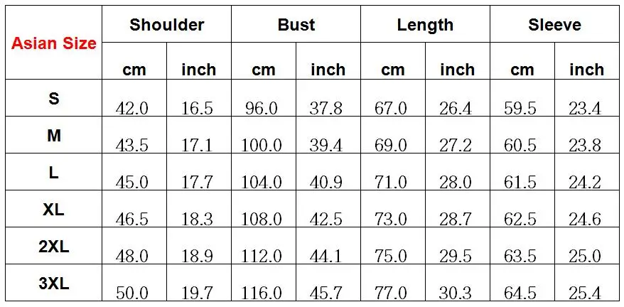 Ex: If you wear S on US Size, it is better if You Choose L on the Asian Size.