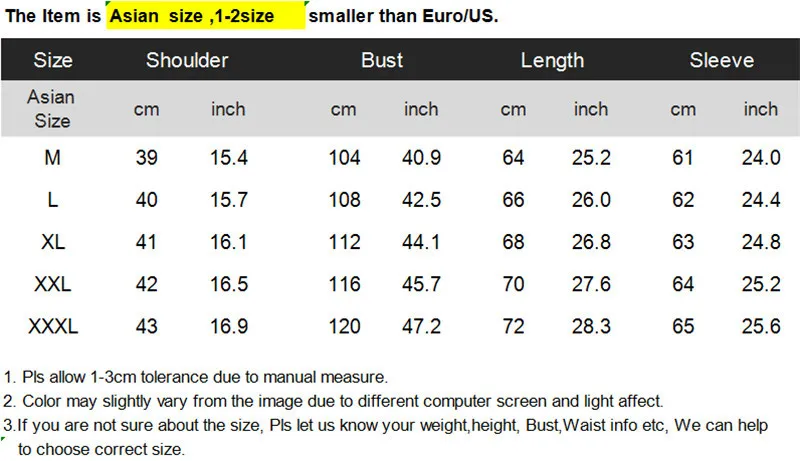 Ex: If you wear S on US Size, it is better if You Choose L on the Asian Size.