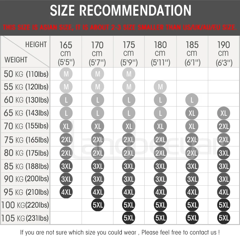 Ex: If you wear S on US Size, it is better if You Choose L on the Asian Size.