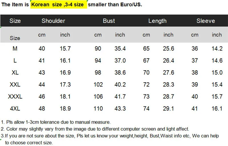 Ex: If you wear S on US Size, it is better if You Choose L on the Asian Size.