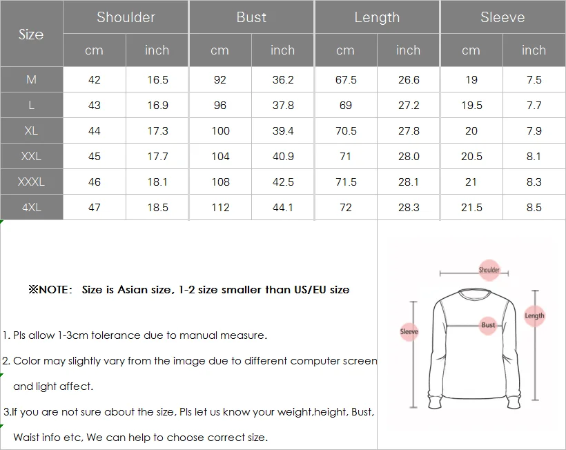 Ex: If you wear S on US Size, it is better if You Choose L on the Asian Size.
