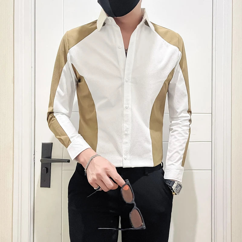 Elevate your style with our Gold Patchwork Color Long-Sleeved Shirt! Crafted from soft and durable polyester fiber, it offers full sleeve coverage for a polished look. Perfect for any occasion, this casual shirt combines comfort and sophistication for a timeless addition to your wardrobe.