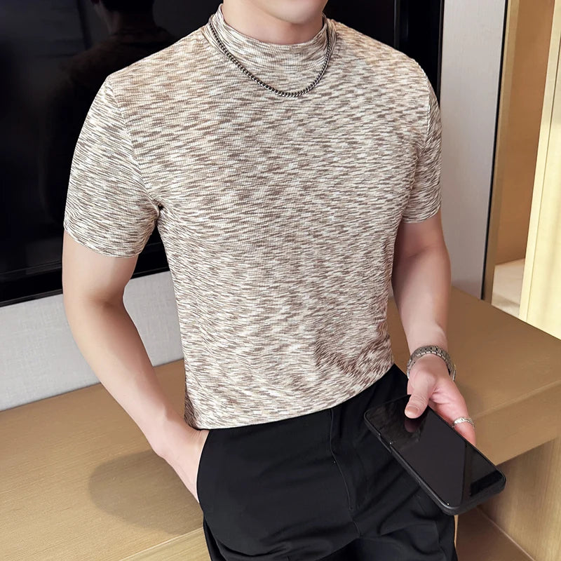This Half High Collar Slim-Fit Casual T-Shirt redefines boundaries with its provocative polyester construction. The sleek silhouette clings to your form with unapologetic confidence, while the distinctive half-high collar adds an edge that demands attention. Casual enough for everyday rebellion, yet bold enough to make statements without speaking.
