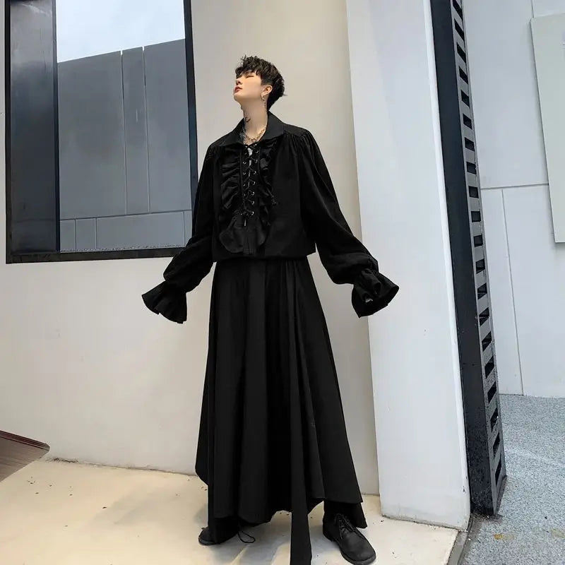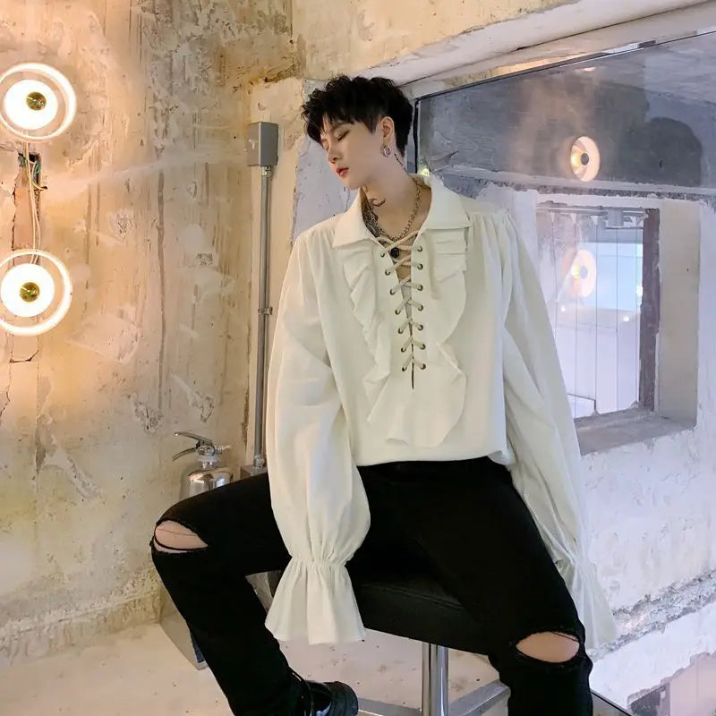 Elevate your style with this daring Lace Up Ruffled Flare-Sleeve Shirt. Featuring a bold solid pattern and dramatic flare sleeves, it adds a touch of rebellious elegance to any outfit. The lace-up detail enhances its edgy appeal, making it perfect for those who love to stand out with confidence and flair.