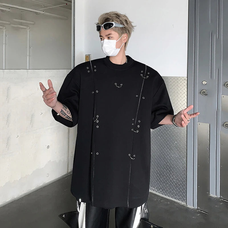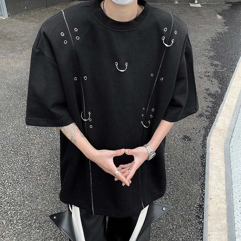 Elevate your style with our Round Neck Metal Rivets Decoration T-Shirt. Crafted with a soft, durable polyester material, this t-shirt features a classic O-neck collar and eye-catching metal rivet decorations. Experience the perfect blend of comfort and fashion and make a statement wherever you go!