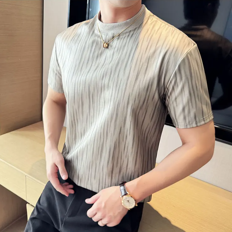 Make a bold statement with this Shiny Striped O-Neck Men's T-Shirt. Crafted from smooth polyester, it offers a sleek, eye-catching shine that sets you apart. The classic O-neck design keeps it effortlessly cool while the striking stripes add an edgy flair. Perfect for those who dare to stand out in style.
